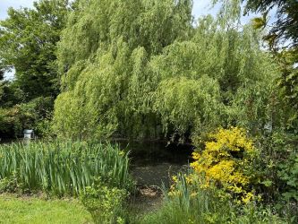 Externally, the property benefits from a private driveway leading to a detached garage and mature gardens to all sides. The rear garden, bordering the pond (not within the ownership boundary), provides an idyllic backdrop and a haven for nature lovers or gardening enthusiasts. This is an ideal project for those looking to create a bespoke home in a desirable location.