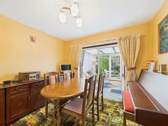The property requires a full scheme of modernisation, making it a perfect blank canvas for anyone keen to put their own stamp on a property. Set over two floors, the ground floor features a spacious living room that flows into a bright dining area, which in turn leads into a charming conservatory overlooking the rear garden. The fitted kitchen, with an adjoining pantry, provides access to the rear of the property and the generously sized garage. A welcoming hallway, downstairs cloakroom with WC, and useful front porch complete the ground floor layout.