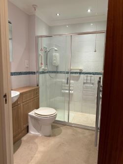 There are two comfortable bedrooms and a modern shower room with a large walk-in shower.