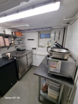 Upstairs, the property benefits from spacious living accommodation, ideal for an owner-operator or staff use. The first floor includes three separate rooms, a kitchen, and a bathroom, providing comfortable and private quarters above the trading area.