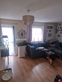 Spacious lounge featuring a built-in storage cupboard and direct access to a private rear garden – ideal for relaxing or entertaining.