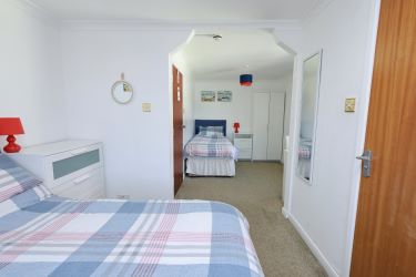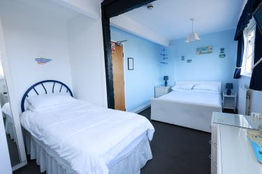Family room with double and single beds. Sea glimpses. En-suite shower room.